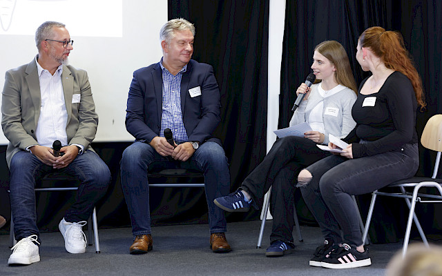 Die anschließende Podiumsrunde brachte das Erfolgsprinzip auf den Punkt: Teamwork! Die Perspektiven von Schüler*innen, Lehrkräften und Partnern bestätigten: „Aus gemeinsamem Wirken, können echte Mehrwerte entstehen!“ Doch nicht nur das Engagement im Team, sondern auch die Zusammenarbeit mit externen Partnern, Unterstützer*innen und anderen Schülergenossenschaften trägt maßgeblich zum Erfolg bei.